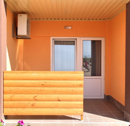 База отдыха "Акварель" в Кирилловке на Федотовой косе предлагает провести отпуск в номере Люкс-студия 2+2. У нас на базе: